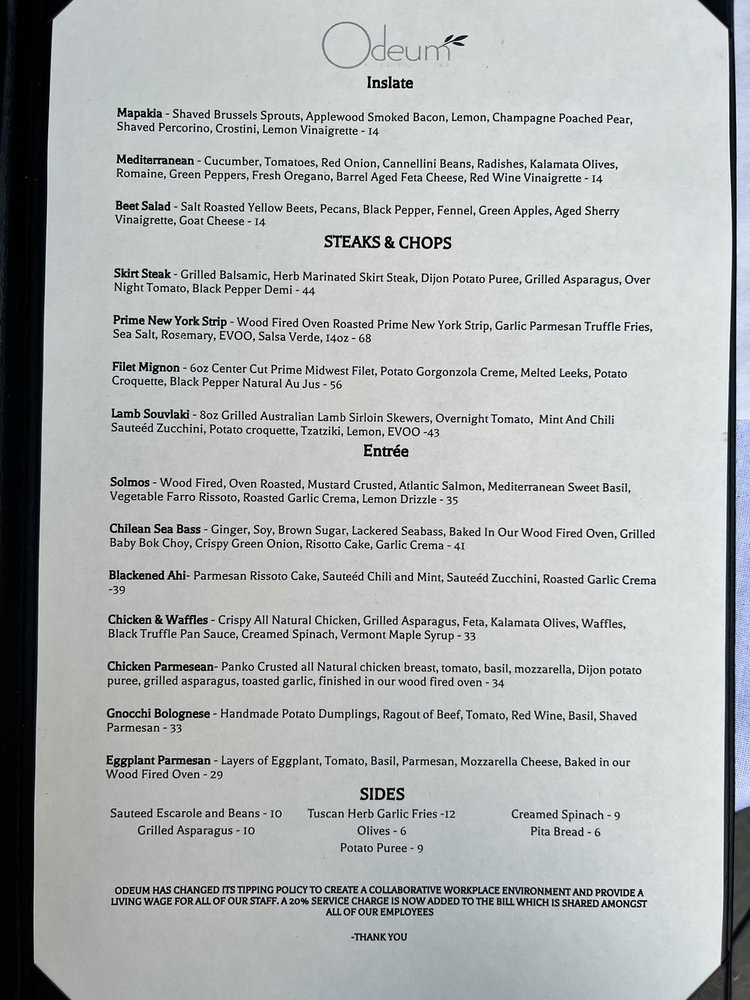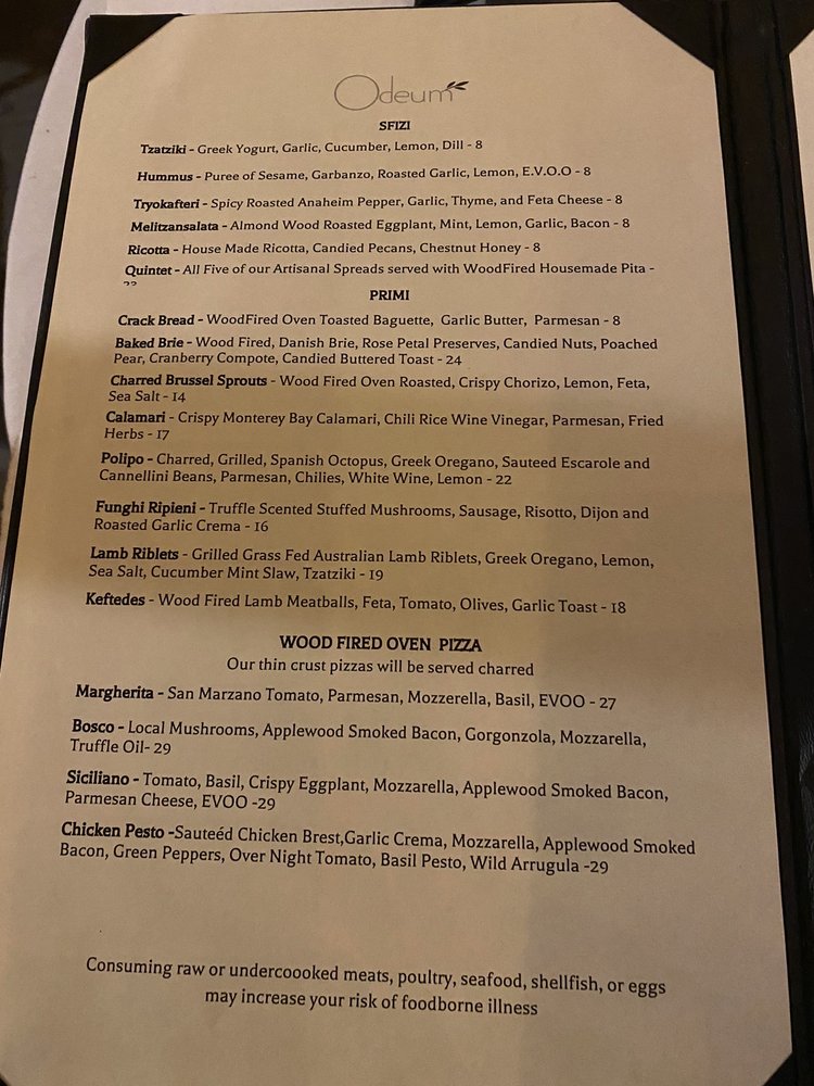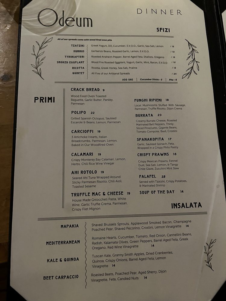 Located in Morgan Hill, CA, Odeum Restaurant offers a Mediterranean dining experience with a range of amenities such as outdoor seating, free Wi-Fi, and a full bar. Customers praise the warm service and delicious food, with highlights including the crack bread, octopus, and Seabass. The cozy and modern ambiance sets the stage for a great dining experience, with prompt and attentive service. The signature cocktail list impresses with unique options like the Milk Punch. Dishes like the Skirt Steak and Chilean Sea Bass are described as delicious and a good value. Despite past mixed reviews, recent experiences have been positive, making Odeum a quality restaurant for a memorable meal. Visit Odeum for a great date night or to enjoy fresh, delicious food along with unique drinks.